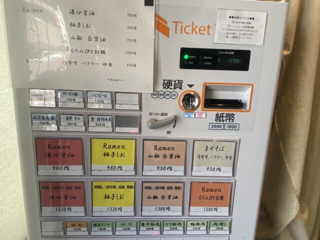 Ra-men山椒白醤油と柚子塩を注文。先に食券を渡していたので数分で着丼。
