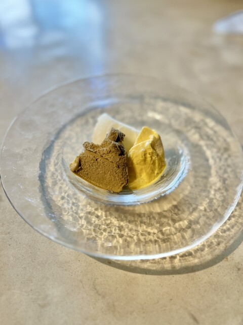 薄い鱗がパリパリで固くなく軽い食感が初めての体験。身は柔らかくてホロホロなのでその対比も面白い。あと白ワインのソースが絶品でした。付け合わせがリゾットなのも嬉しく、栗?のようなこっくりした身?豆?が入っていたのもセンス良い!