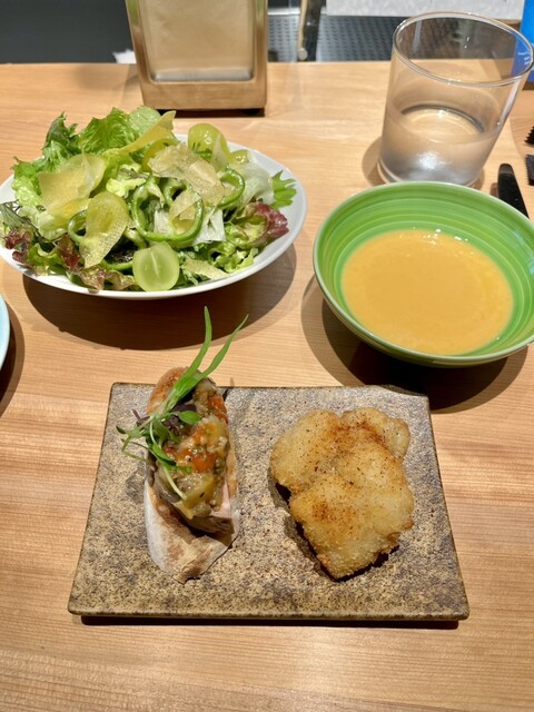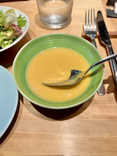 …バターナッツのポタージュ。なんともオシャレでなかなか出会えない素材感。カボチャよりもあっさりしつつコクはしっかり。この時点でこの値段で良いのか心配になるほど。