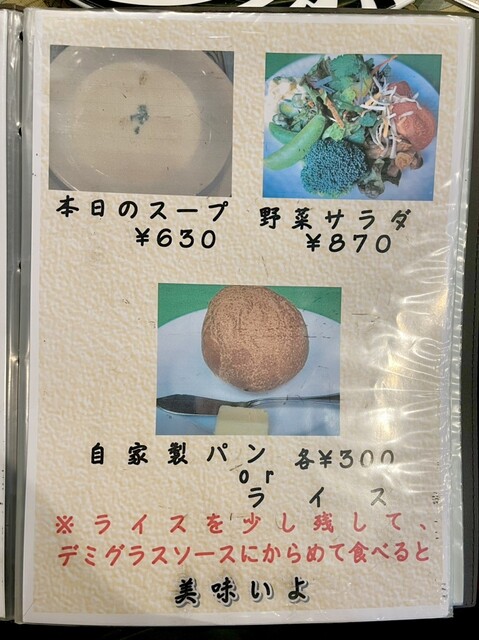 …パンかライスを選べます!ハンバーグをオーダーするならソースをぬぐえるパンがおすすめ。