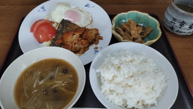 平日の昼時、先客は0名。お得なランチメニューから煮魚黒ムツ定食大盛+納豆(730円税込)を注文。激...