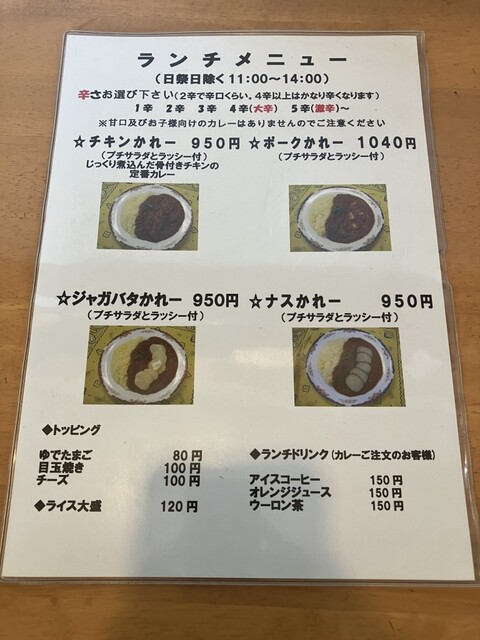 辛さは選べたので5辛(激辛)で注文。ランチにはプチサラダとラッシーが付いてくる。カレーはスジ肉の様な物がたっぷり入っていて、かなりドロッとした少し酸味のある...