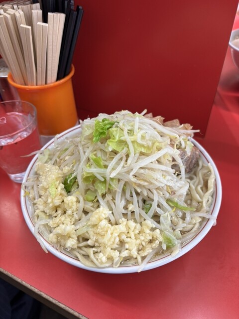 開店直後を狙っていきました。着いたらびっくりするほどの行列です。駐車場も店の前、第二駐車地とけっこうな台数が停められますが、満車です。少々待って、車を停めて並びます。先に食券を買うシステムです。食券に...