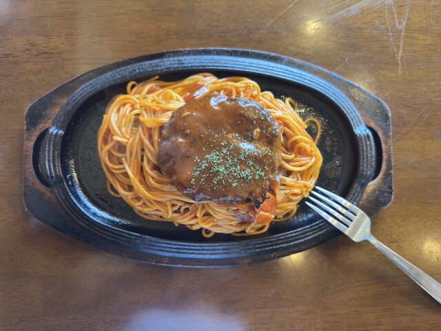 ハンバーグもジューシーで、ナポリタンに良く合う味わい。