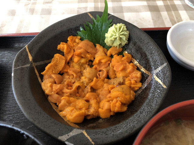 ウニは過去一二を争う美味しさ。ウニは田舎に行くほどに美味しいのは、鮮度が命だからか?見た目は不揃いだけど、味は最高。ウニが温まらないようにあえてご飯に乗せないで提供されるけど、ウニ「丼」と名乗っている。ご飯のお代わり自由なので、ご飯2杯でウニをかきこんだ。