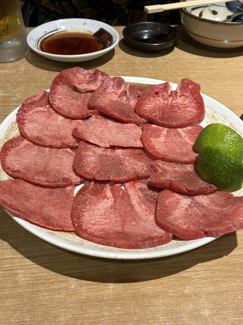 タンは肉厚で付け合わせのすだちと一緒食べると美味しいです。