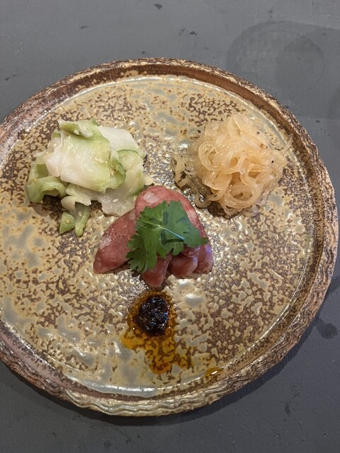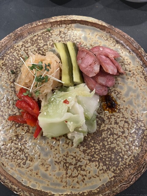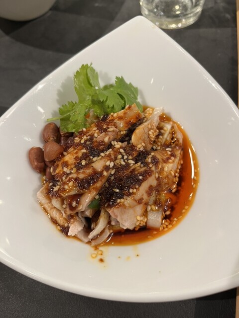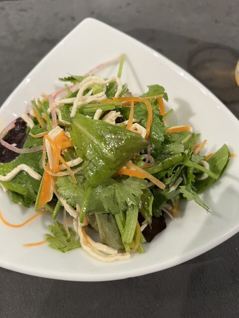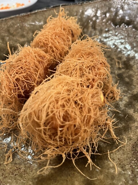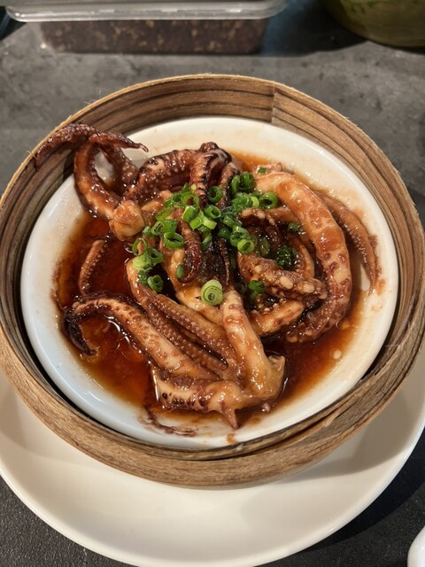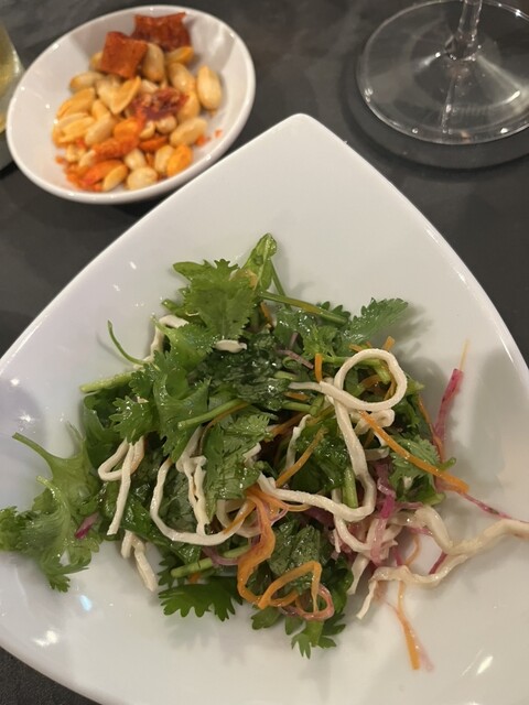 何を頼むか悩みました。えび、ゲソ、おぼろ豆腐。とっても美味しいランチでした。もちろんワインも。