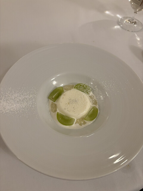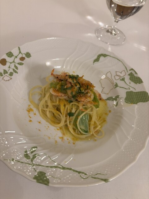 お店の佇まいや接客などなど、とても感じが良かったです。食前酒にスパークリングワインと葡萄ジュースのカクテルからスタートして 鮮魚のカルパッチョ かぼちゃの冷製スープ 砕いたビスケットの甘さがアクセントになって美味しかった。クレープのラリエリ風も切るとチーズがとろけて コクのあるとろける美味しさ。イカスミのリゾットは カリッと焼いて香ばしくて楽しい。