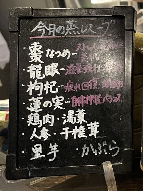 ・ふかひれ入りの蒸しスープは棗や龍眼など不思議な食材がたくさん入っていてとても地味深いお味