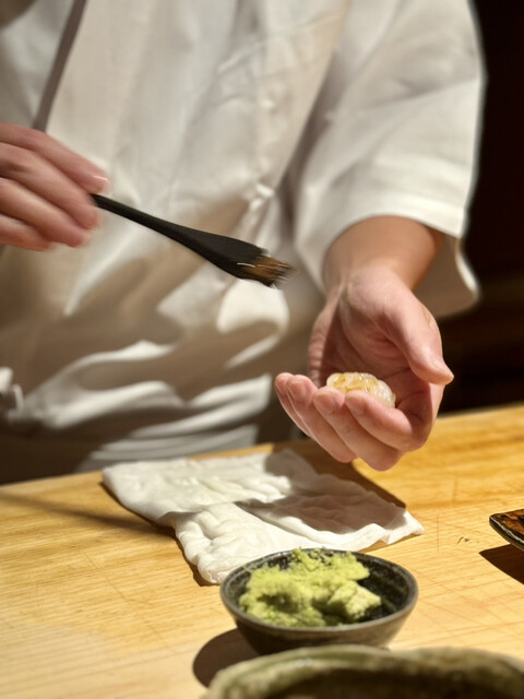 目の前で仕上げられる鮨は、味わう前からすでに作品で、シャリの温度、ネタの艶、湯気の揺れさえも演出の一部のよう。
