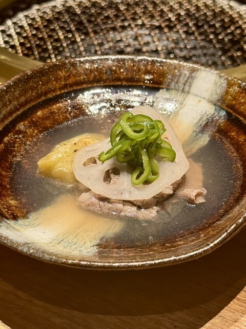 出汁しゃぶと焼きなす、新蓮根という嫌でも胃が喜んでしまう一品。