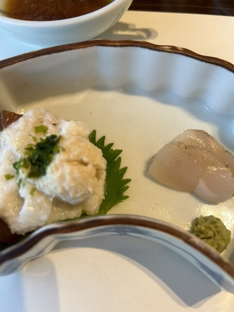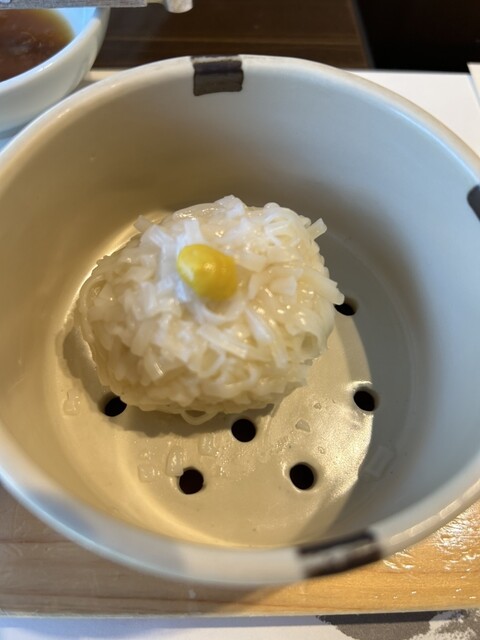 落ち着いた雰囲気でゆったり懐石ランチをいただきました。胡麻豆腐、タイラギ貝と葉山葵の和物の脇に、3段の引き出しです。上段は、鯖寿司、だし巻き玉子など、中段は鰻と鶏の煮物、下段は湯葉です。どれも上品な味付けで美味しくいただきました。続いて茶碗蒸し、お造り、豆腐シュウマイ、生麩田楽、天麩羅、銀鱈西京焼きと来て、トドメは黒毛和牛の溶岩焼きです。飯物、吸物、香の物の後に、デザートのあずき豆腐で贅沢な満腹満足ランチでした。