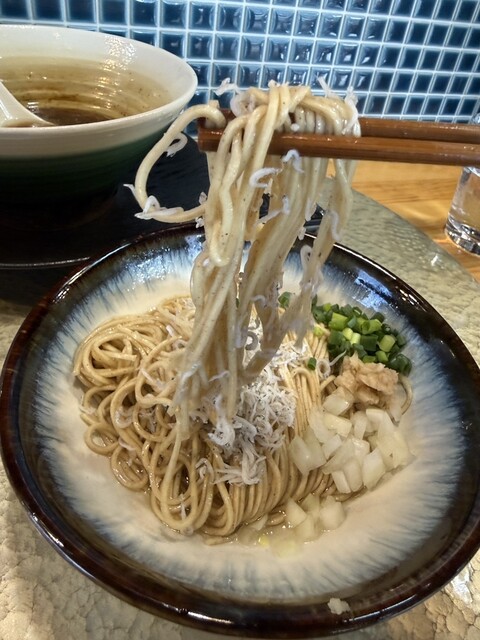 まずはそのまま麺と絡んだしらすと一緒に1すすり。これは美味い。しらすからフワッと鼻に届く海の香りがたまらない。また、青ネギと白ネギが2杯目のラーメンをいとも簡単に胃袋に入れてくれるようなアシストをしてくれる。サッカーでいうと、クリスタル・パレスの鎌田のような存在感。