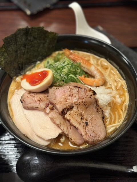 何を食べるか悩みに悩んで今年1発目は特製海老白湯ラーメンとポイントが貯まっていたので篠島しらす丼(ポイントを使って無料)をチョイス。