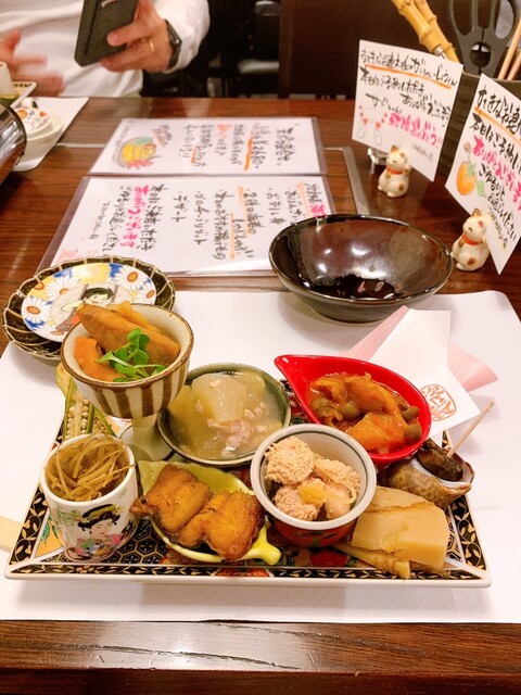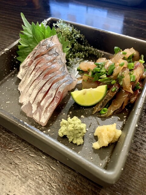 注文したのはカンジャンセウ、串盛り、刺身盛り、銀鮭、燻製ポテトなどなど