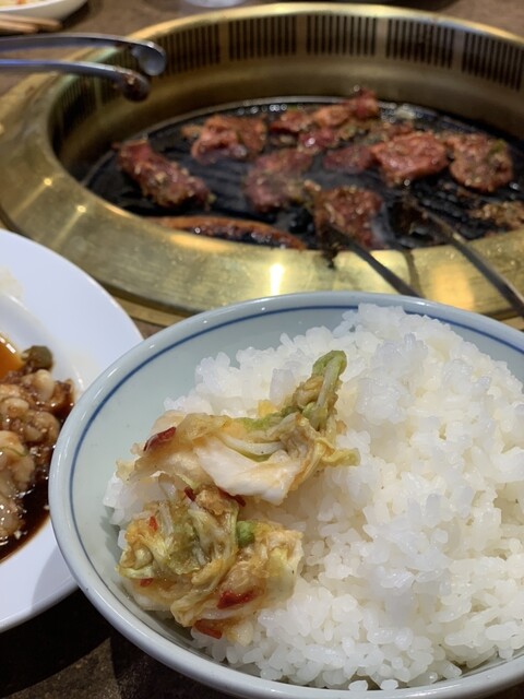 タン塩、カルビ、牛ホル、ハラミ、レバー、上ミノライス大、赤だし〜ここのキムチが大好きでエゴマと同じ味付けになってて凄く良い。