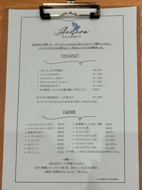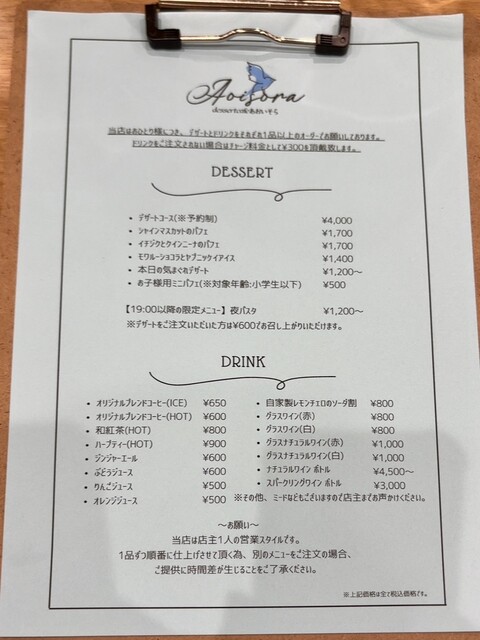 注文方法:メニュー表で口頭にて