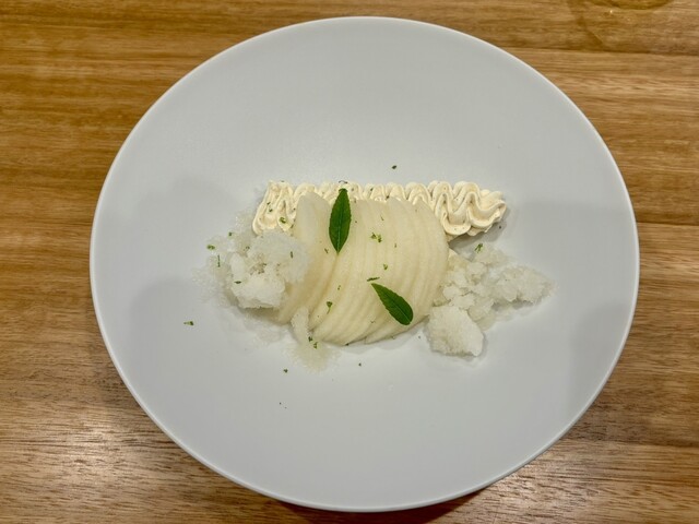 和梨のスライスと生姜のメレンゲ