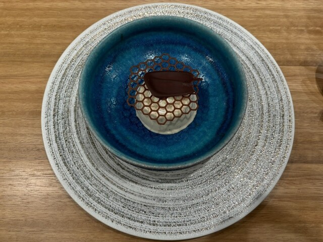 綺麗な器に載せられたほうじ茶のパンナコッタ