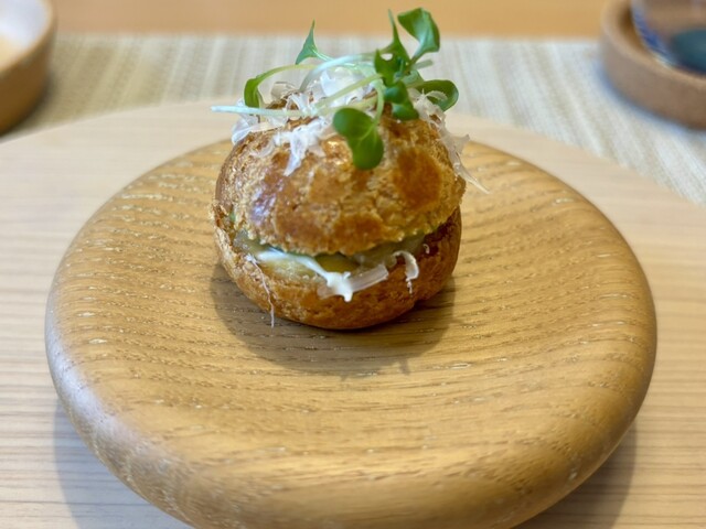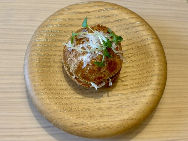 約5分ほどしてドリンクとシュー生地にベーコンとブロッコリーが詰められたグジェールが提供された