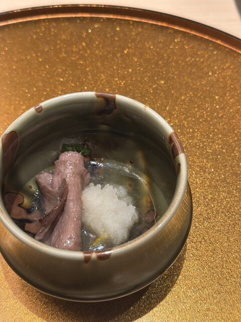 トッピングにはキャビア、花穂紫蘇、たくあんソース。