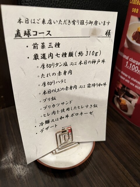 3回目の訪問。今回も直球コース、厳選肉7種類310gを頂きました。