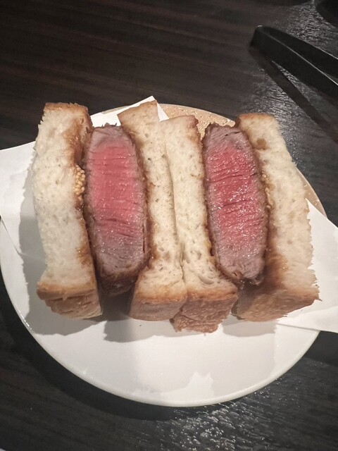一番楽しみにしていた、ブリカツサンドは本当に美味しかった。お肉はミディアムレアで、衣に甘めのソースと粒マスタードが良い。一切れが大きい大きい。