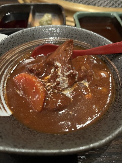 前菜はビーフシチュー。前菜には珍しいけど、店員さんの『先ずは胃を温めてください』という説明で納得。とにかく優しくて美味しい。