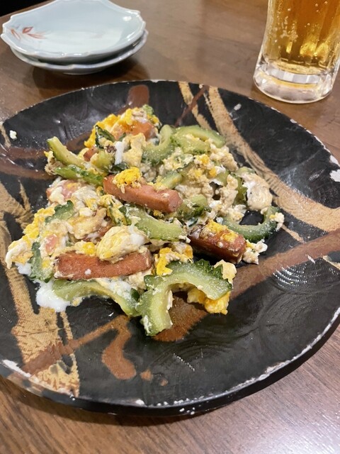 ゴーヤチャンプルー。ゴーヤが全く苦くなくおいしい。