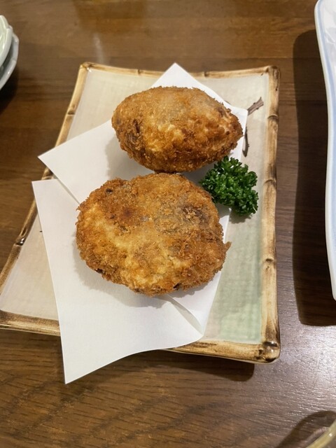 田芋のコロッケ。なかに甘く煮たようなしいたけ(?)が入っていてアクセントになっていて美味しい。田芋を粗く潰しているぐらいがまたいい。