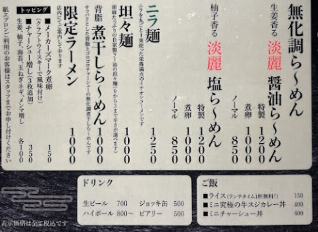 新宿御苑の方面の帰りにラーメンが食べたくなり、検索したところ美味しそうだった「我論」へ行きました。無化調ラーメンだったのも気になった理由の一つです。