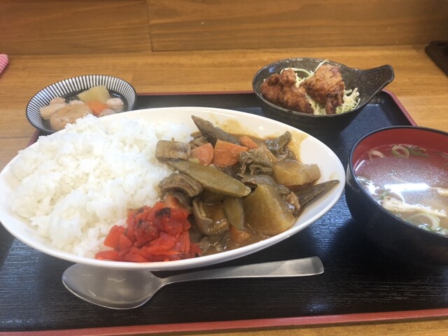 土曜日お昼に訪問。私は唐揚げ定食、子供は生姜焼き定食にしました。本日のイベント?の看板が出ていて、カレーが無料サービスでした(ルーのみ)。びっくり。ご飯を大盛りにして、カレーもいただきましたが、とても美味しかったです。メインの唐揚げ定食は唐揚げが大盛りです。付け合わせのキャベツサラダも美味しい。唐揚げが食べ切れなくて子供に少し手伝ってもらいました。