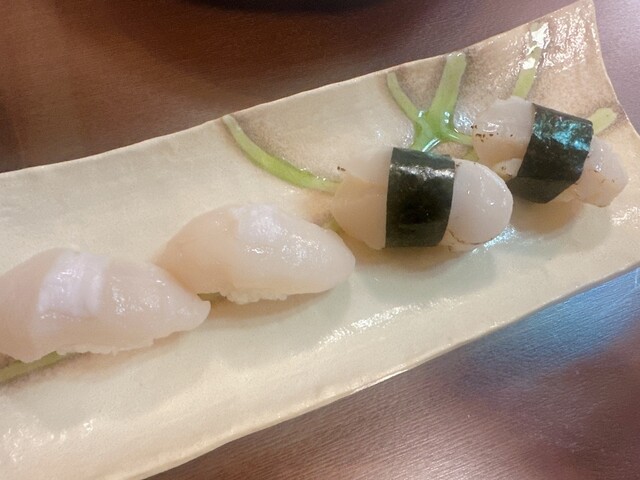 カンパチ、ヒラメ(ポン酢ジュレとわさび一貫ずつ)ウニ