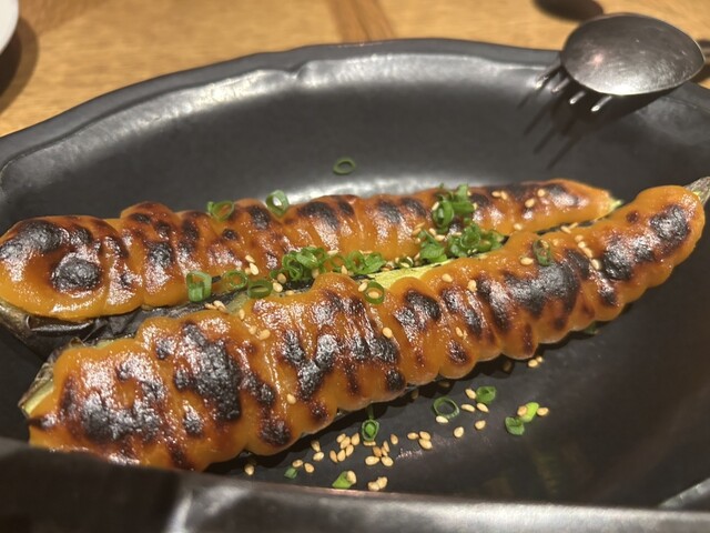 ・お茄子に卵味噌(だったと思う)を乗せ焼いたもの。こちらも口の中でとろけて美味すぎるだろー!