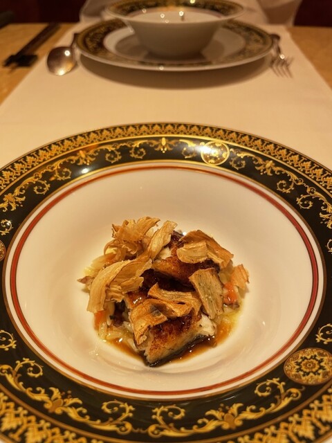 お塩と付け合わせの黒トリュフと一緒にいただくのも格別のおいしさでした。