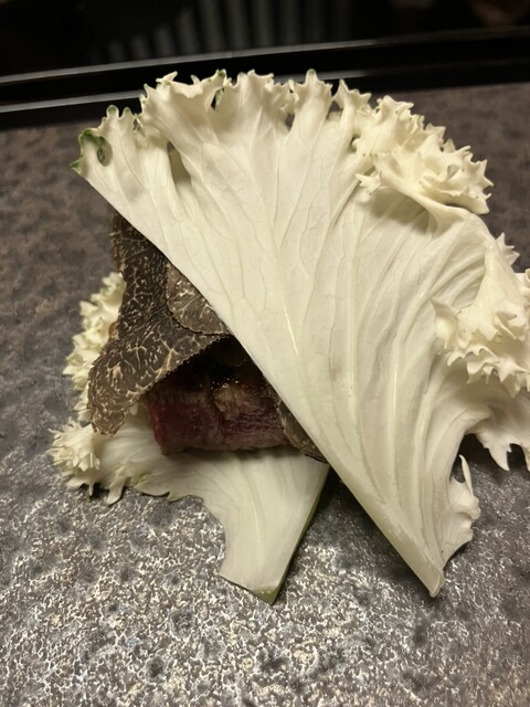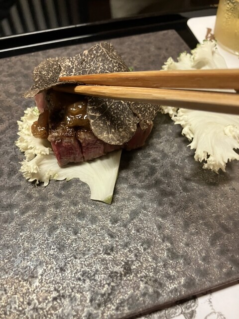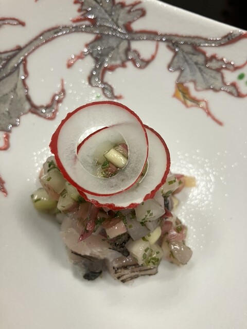 野菜から魚介類 アワビのミソソースにも洋のエッセンスが詰まり初めて食べるお味にも感動しました。〆のご飯から、デザートまで一連の流れが全て相乗効果の有る考え抜かれたメニューに感動しました。 早くも次回を楽しみにしています。