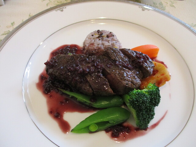 プレミアムランチの北海道の蝦夷鹿の料理は、ロースト。赤ワインのソースでいただく。との事で、興味津々。