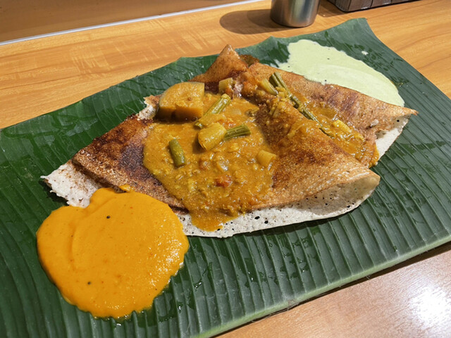 パリパリもっちりのドーサがめちゃくちゃ美味しい。