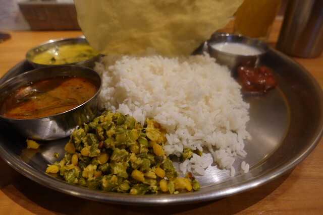 ミールスは安定の美味しさで、大きくなったパパドが嬉しい。