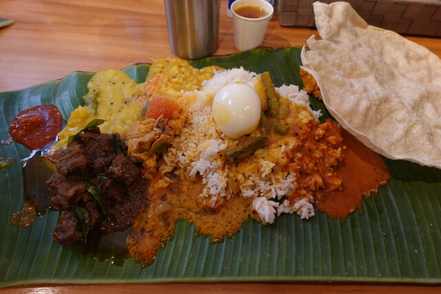 ネリッカイウールガイ、ポディ?、パッタニスンダル、キーライクートゥ、じゃがいもポリヤル?、ベンダッカイモチャイカラニ、サンバル、パパド、ネイパルップ、ポンニライス、エローデチキンカレー、ニルギリマトンドライ、サッカライポンガル、ラッサム