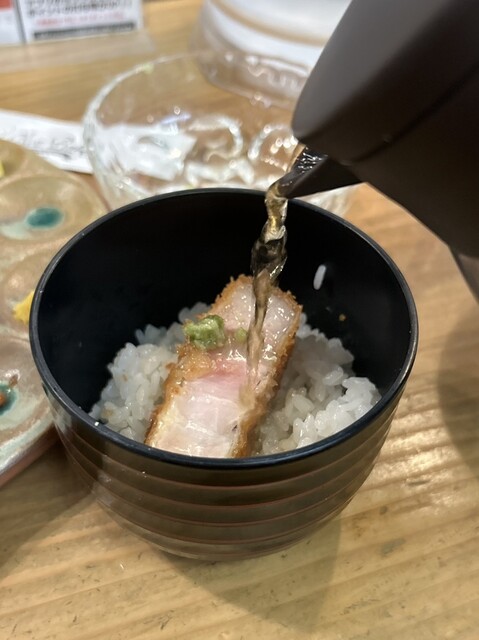 〆…ご飯にトンカツひと切れとわさびを乗せ、だしをかけたトンカツ出汁茶漬けをいただきました♪♪