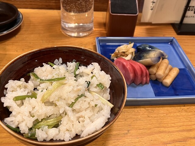 筍の土佐煮、ふきのとう海老揚げを頼んで