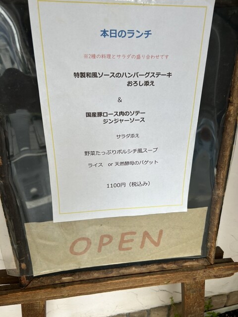 ランチではメニューは1種類で、この日はおろしハンバーグと生姜焼き。スープ+ライスorパンが出てくる。