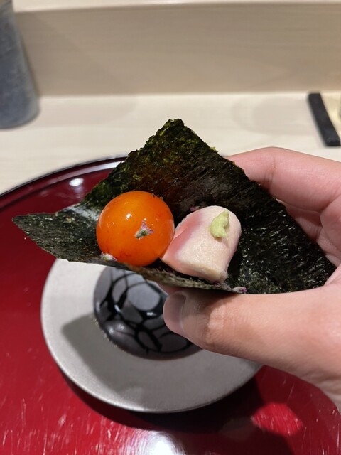 瞬く間に横浜の予約困難店になった人気焼き鳥店。大将の千田氏は名店『里葉亭、美鶏』出身。2021年に独立。希少鶏『神戸高坂鶏』を使用したフルコース。