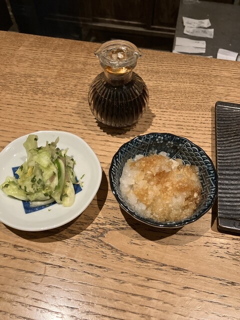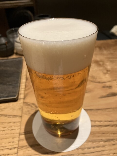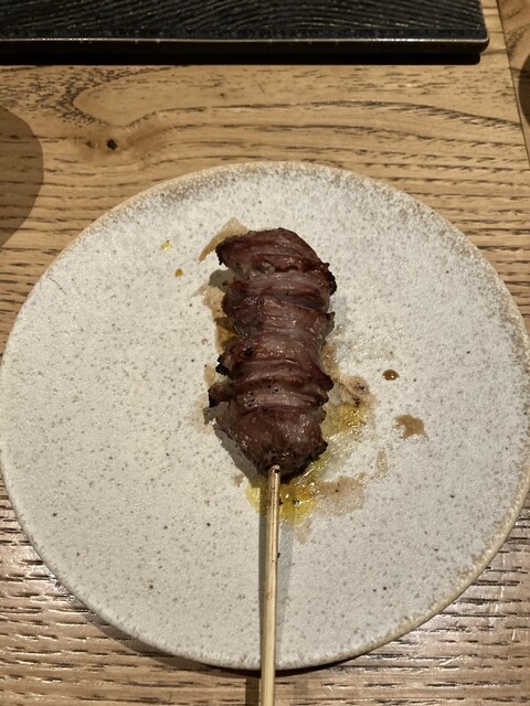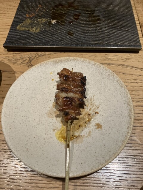 久しぶりの訪問です。今回もカウンター席を予約して行きました。前と同じ8,200円の堪能コースを注文しました。まずは生ビールで晩酌スタートです。最初にお通しとして白菜のおしんこが出てきました。それを食べ、生ビールを飲みながら目の前の炭火で焼かれる串焼きを見ていました。まずはハツモトが出されました。肉質がしっかりしてとても噛み応えがありました。この店のネギは玉ねぎが挟まっていて、とても甘みがあって鳥とよくあっておいしかったです。せせりはニンニクが添えられており、肉も大きくて食べ応えがあっておいしかったです。レバーハナまで焼かれており、ねっとりとした食感でとてもおいしかったです。うずらの卵、玉ねぎの串焼きとうずらの玉子が出されましたが、とても味わいが深かったです。つくねはミンチがとてもしっかりしていて食べやすくておいしかったです。手羽も味わいが深かったです。追加で鶏皮、提灯厚揚げを食べました。いずれもとても美味しくいただきました。締めに中華そばを食べました。鶏のダシがたっぷりのスープと麺が絡んでおいしかったです。デザートとしてマスカレポーネアイスを食べました。2種類のソースをかけるようになっていておいしかったです。ただし焼き鳥としては他の店よりも値段設定が高めでしたので、贅沢をしたい方向けのお店かもしれません。
