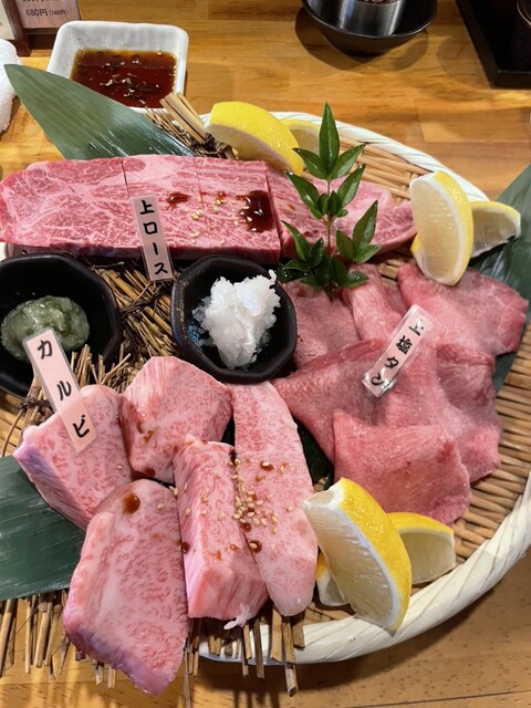 上塩タン、炙りユッケ、幻カルビ、特選ハネシタ、ハラミ、厚切り上塩タン、上ロース、三日月ロース、カルビを注文しました。