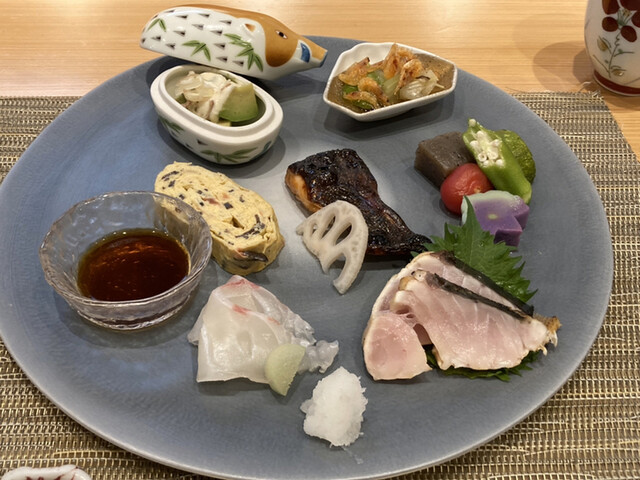 八寸は本日の御造り、御野菜煮合せ、トマトと木耳出汁巻、ア...