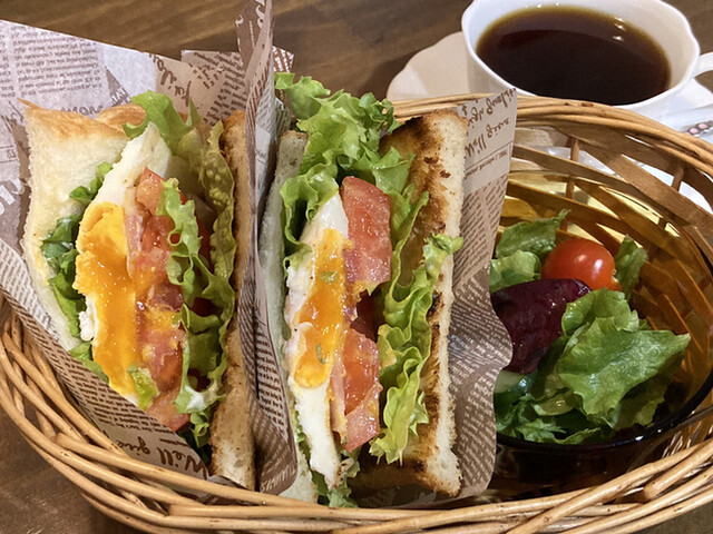 サンド2種にサラダとドリンクとスイーツがセットになってます。