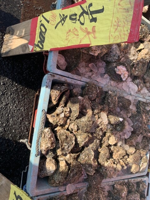 外には生牡蠣(岩牡蠣)が1個1000円で販売していたため、購入して食べてみました。