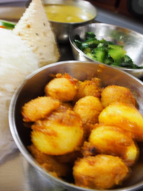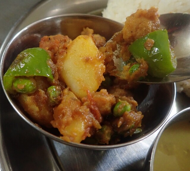 タルカリは、ささげ、じゃが芋、マショウラなどが入っていた。昔、ささげを食べた事があった。でも